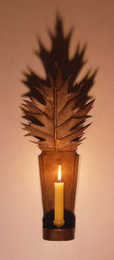 Charles Baker, sconce, America, modern reproduction of the sconce illustrated in ?g. 286. Tinned sheet iron. H. 17 1/2", W. 7". (Private collection; photo, Gavin Ashworth.)