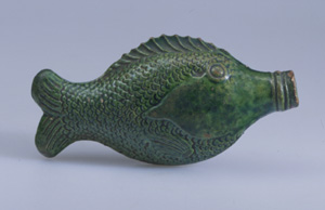 Bottle, attributed to Bethabara or Salem, North Carolina, 1786 1821. Lead-glazed earthenware. H. 5", W. 2 1/2". (Collection of the Museum of Early Southern Decorative Arts.)