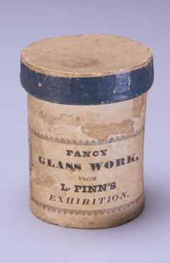 glass, America, 18301835. Printed paper and pasteboard. H. 3", Diam. 1 1/4". (Courtesy, Richmond History Center, the Valentine Museum.) The box reads: Fancy Glass Work from L. Finns Exhibition.