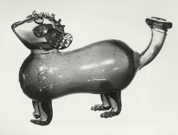 Pig bottle, America, 18201850. Glass. H. 5 1/4", W. 3", D. 8 1/4". (From the Collections of Henry Ford Museum & Greenfield Village.)