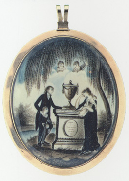 Mourning Miniature for Two Children of William Wyche and Elizabeth Reines of Virginia, attributed to Samuel Folwell, 1803. Watercolor on ivory. 2 5/8" x 2 1/8". (Private collection; photo, Colonial Williamsburg Foundation.)