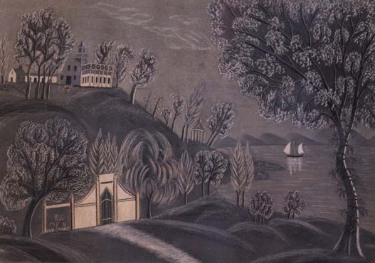 Mount Vernon, Va., probably New Hampshire, ca. 1845. Sand and chalk on wove paper. 14 1/2" x 19 1/2". (The Plotkin Family Collection, Nyack, New York; photo, Gavin Ashworth.)