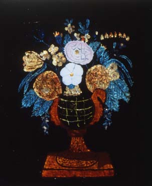 Vase of Flowers, unidenti€ed artist, America, ca. 1860. Reverse painting on glass with foil. 14 7/8" x 12 7/8". (Collection of the American Folk Art Museum, New York. Gift of Mr. and Mrs. Day Krolik, Jr., 1979.3.4.)