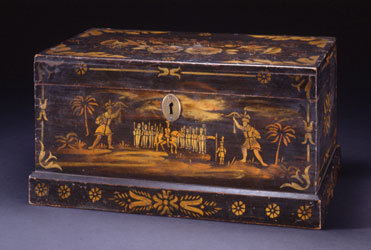 Box, New England, ca. 1825. Wood, bronze powder stenciling, and painted decoration. H. 10", W. 18", D. 10 1/2". (Collection of the American Folk Art Museum, New York. Gift of Jean Lipman, 1995.4.5; photo, John Parnell, New York.)