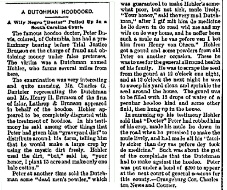 ... Dr. Peter Davis was put on trial for his hoodoo practices in the 1890s.