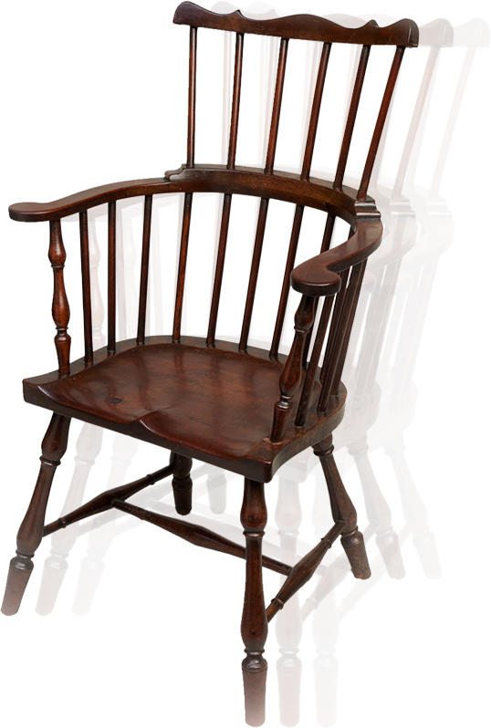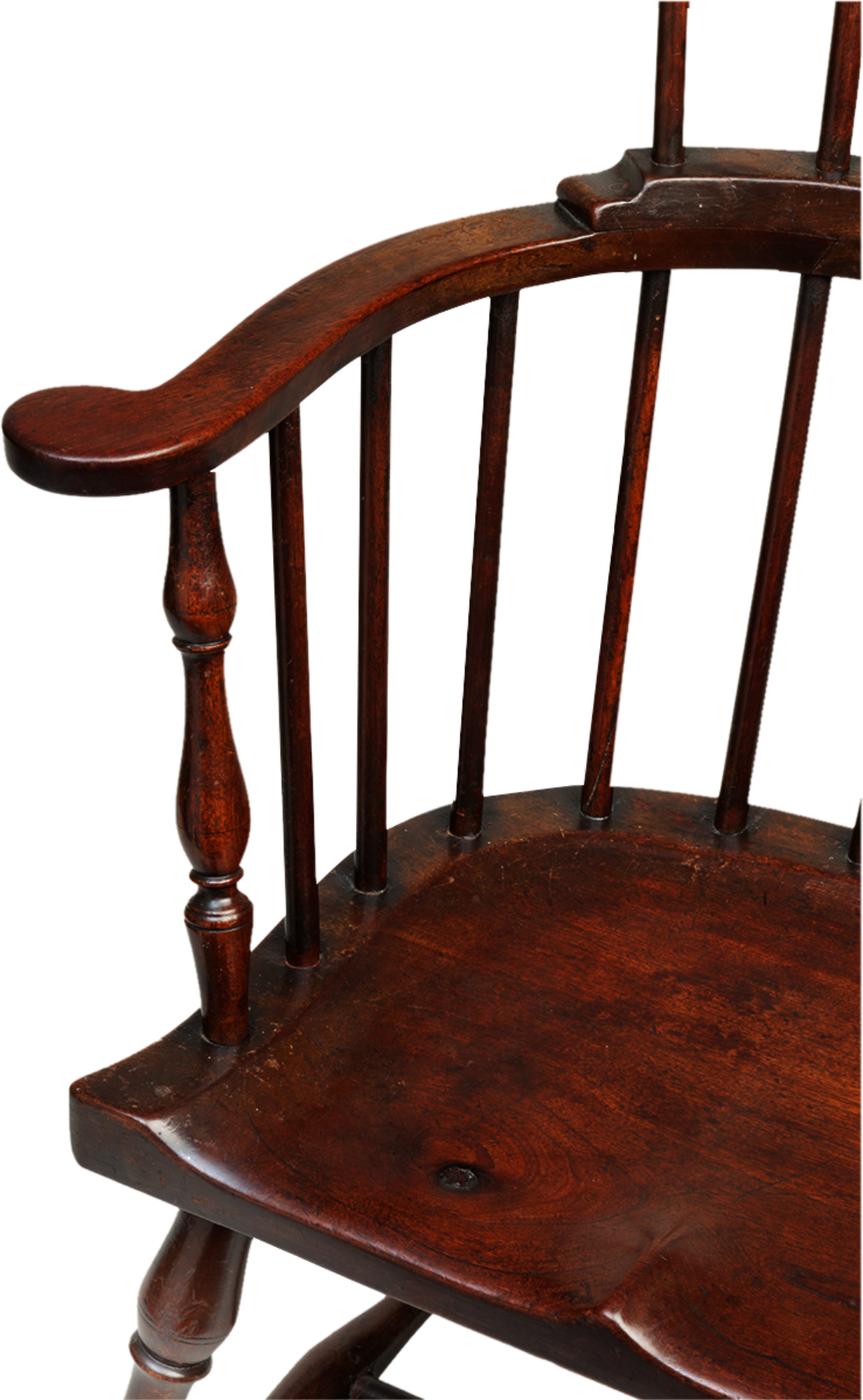 Over time, many different names have been used to identify this type of chair. One that first rose to popularity in England beginning in the 1700s was “Forest Chair.” The term comes from the early production in England of chairs made from wood gathered in the forests around Windsor, and to this day “Windsor chair” remains the most common name. Because mahogany trees that grew in the forests of Jamaica were used to create this example, the designation as a “Forest Chair” is particularly appropriate and speaks not only to the site from which the wood came but also to the forced harvesting of mahogany by Africans and their descendants in the tropical rainforests of the Caribbean.