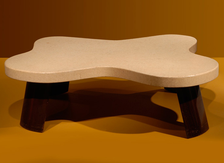 The curving organic shape of this coffee table helped inspire the rage for 1950s “boomerang” furniture. Within a decade, however, critics panned such overtly sculptural forms as garish examples of post-war consumer excess. Richard Hamilton, a British painter and design critic, decried England’s fascination with short-lived American fashion trends. He criticized designers like Paul Frankl, who made this coffee table, for disregarding the sensible axiom of “form follows function” and instead shifting their styles to match the whims of fashion. Frankl first found fame in the 1920s for his tall, stepped “Skyscraper” furniture. After World War II, he moved from New York to Los Angeles and began to create softer more “biomorphic” forms. Hamilton hoped that in the 1960s designers in both England and America would stop trying to create products to please consumers. Instead, he suggested that they hire scientific researchers to help them “design” shoppers who liked their furniture.