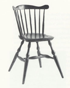 | Figure 17 Fan-back Windsor side chair, northeastern coastal Connecticut, 17901800. Basswood (seat), maple, and hickory (microanalysis). H. 30 3/8", W. (crest) 18 3/8", D. (seat) 15 7/8". (Courtesy, Winterthur Museum, acc. 59.2081.) |