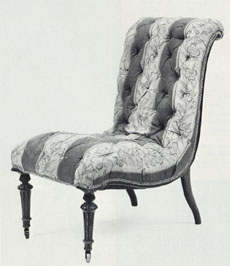 | Figure 31 Mexican chair by L. Marcotte & Co., New York, 1869. Ebonized wood. H. 35 1/2", W. 20 1/2", D. 30". The plump scroll on the curve of the back is typical of Marcottes work. (Photograph by David Bohl in addition to Courtesy of the Society for the Preservation of New England Antiquities, acc. 1969. 2908.) |
