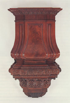 | Figure 4 Pulpit attributed to William Crafts and William Burbeck, Boston, 17721773. Mahogany and mahogany veneer with white pine. H. 83 5/8", W. 50 1/8", D. 18 3/4". (Courtesy, Society for the Preservation of New England Antiquities, acc. 1975.195, and the Massachusetts Historical Society, acc. MHS 255 [base]; photo, David Bohl.) |