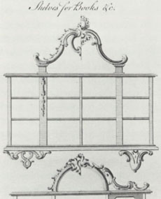 | Figure 32 Designs for Shelves for Books &c illustrated on pl. 67 in the Society of Upholsterers Houshold Furniture in Genteel Taste, for the Year 1763 (London, 1763). (Courtesy, Cary Collection, Redwood Library and Athenaeum, Newport, Rhode Island.) |