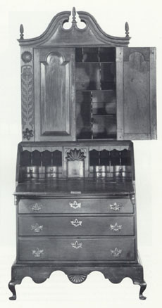 Desk-and-bookcase, Hampshire County, Massachusetts, ca. 1775. Cherry with pine. H. 82 3/4", W. 35 1/2", D. 19 3/4". (From the Collections of Henry Ford Museum and Greenfield Village, Copy and Reuse Restrictions Apply.)