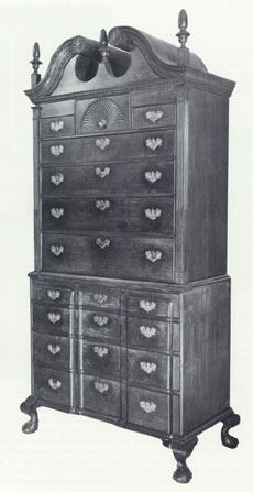 Chest-on-chest, southern New Hampshire, ca. 1780. Maple with pine. H. 89", W. 40 5/8", D. 19 7/8". (Courtesy, The Currier Gallery of Art, Manchester, New Hampshire. Museum purchase: George A. Leighton Fund, 1960.7; photo, Frank Kelly).