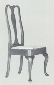 | Figure 15 Side chair, Wethersfield, Connecticut, 1735-1760. Cherry. H. 40 1/2", W. 18 1/2", D. 15 1/4". (Private collection; photo courtesy, Connecticut Historical Society.) This chair is from a set of at least five. The slip seats of two chairs have most of their original foundation upholstery and remnants of their needlework covers. |