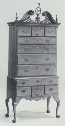 | Figure 3 High chest attributed to Eliphalet Chapin, East Windsor, Connecticut, 17711795. Cherry with white pine. H. 87", W. 39 1/2", D. 18". (Courtesy, Wadsworth Atheneum, Wallace Nutting Collection. Gift of J. Pierpont Morgan, by exchange and The Evelyn Bonar Storrs Trust Fund.) |