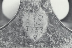 Detail of the initials and date on the inlaid heart of the chest illustrated in fig. 24. (Photo, Brock Jobe.)
