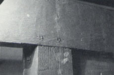 Detail of the hatchet marks on the inner face of the front rail of the cupboard illustrated in fig. 2.