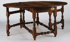 Figure 21  Gateleg table, Charleston, South Carolina, 1690–1710. H. 29 1/2"; top: 52 1/4" x 67 1/8" (open). Cypress and red cedar. (Courtesy, The Charleston Museum, Charleston, South Carolina; photo, Gavin Ashworth.) http://charlestonmuseum.org