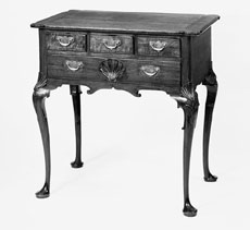 Figure 45  Dressing table, Charleston, South Carolina, 1725–1735. Walnut. H. 31 5/8", W. 3 13/4", D. 21". (Collection of the Museum of Early Southern Decorative Arts.) The dressing table has an illegible inscription written in French.