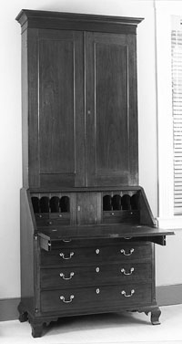 Desk-and-bookcase, Nashville area, Tennessee, 17951805. Walnut with tulip poplar and walnut. H. 106 9/16", W. 44 1/2", D. 22 1/2". (Courtesy, Ladies Hermitage Association; photo, John Bivins.)