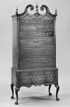 High chest, Winchester area, Virginia, 1795. Walnut with yellow pine and tulip poplar. H. 97", W. 44", D. 24 1/4". (Courtesy, Colonial Williamsburg Foundation; photo, Hans Lorenz.)