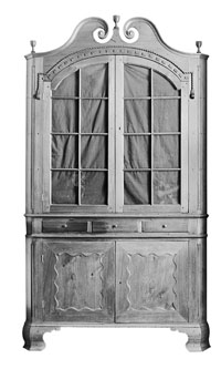 Corner cupboard, Greeneville area, Tennessee, 17951820. Walnut with tulip poplar. H. 95 1/4", W. 47" at front face with 4" returns. (Private collection; photo, Museum of Early Southern Decorative Arts.)