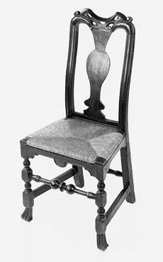 Side chair, Portsmouth, New Hampshire, 17251740. Maple. H. 40 1/2", W. 18", D. 18". (Private collection; photo, Douglas Armsden.)
