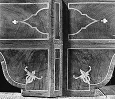 Detail of two bracket feet on the library bookcase illustrated in fig. 1, showing inlays and stringing. (Photo, Gavin Ashworth.)