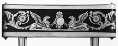 Detail of the crest tablet of a fancy upholstered-seat side chair, possibly John or Hugh Finlay, Baltimore, 18151825. Cherry, maple, and yellow poplar. H. 315/8", W. 20 1/8", D. 21 1/2". (Courtesy, Winterthur Museum.)