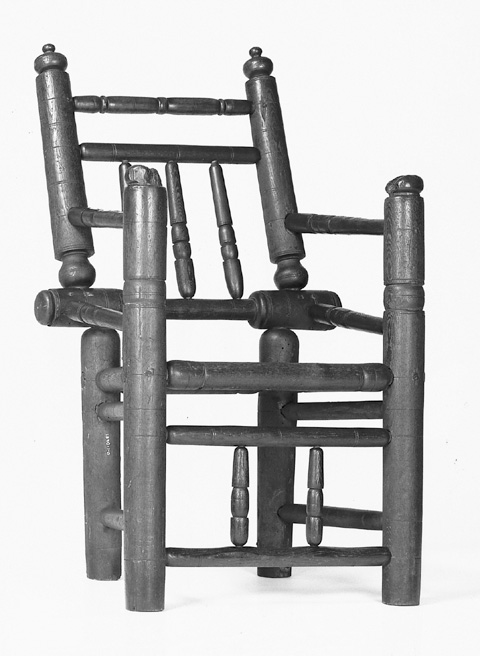 Figure 7  Turned chair, Connecticut, 1650–1700. Ash and oak. H. 41 1/8", W. 23", D. 16 1/2". (Courtesy, Connecticut Historical Society; photo, Robert Bitondi.)