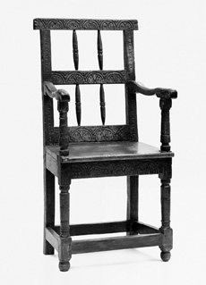 Joined chair, eastern Massachusetts, 16601680. Oak. H. 44 1/4", W. 23 1/4", D. 15 1/4". (Courtesy, Museum of Fine Arts, Boston; gift of Aimée and Rosamond Lamb.)