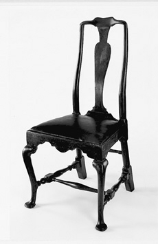 Side chair, Boston, ca. 1730. Walnut. H. 41", W. 19 3/16", D. 15 3/4". (Private collection; photo, Gavin Ashworth.) The crest rail may be a replacement.