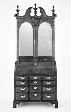 Desk-and-bookcase, Boston, ca. 17401750, Unknown artist. Mahogany, oak secondary wood. H. 94", W. 41 1/4", D. 24". (Courtesy, Art Institute of Chicago, major acquisitions Centennial Fund.) The feet and one finial are replaced.