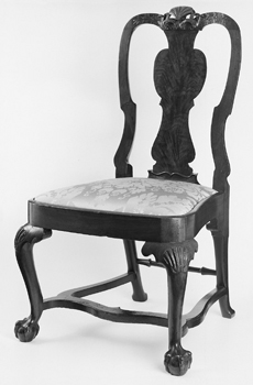 Figure 36 Side chair, Boston, ca. 1735. Walnut and walnut veneer with maple and white pine. H. 38 5/8", W. 20 3/4", D. 18 1/2". (Courtesy, The Metropolitan Museum of Art, gift of Mr. and Mrs. Benjamin Ginsburg, 1984 (1984.21) photo, Gavin Ashworth.)