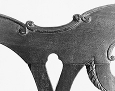 Detail of the crest rail of the armchair illustrated in fig. 11, showing the carved volutes.