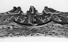 | Figure 6 Detail of the carving on the front rail of the side chair illustrated in fig. 5. The tradesmen who made the chairs in this set used a combination of planes, chisels, files, and scrapers to prepare the upholstery surfaces on the front and side rails. Because the front rails are serpentine, they used a curved toothing plane to finish the area for the foundation upholstery (approx. 1" 11/4" at the top) and chisels, files, and scrapers to prepare the surface below. On the side rails, they used a standard smoothing plane to finish the area for the foundation upholstery and chisels, files, and scrapers below. |