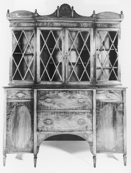 Gentlemans secretary attributed to Edmund Johnson, Salem, Massachusetts, 17951812. Mahogany and satinwood with pine. H. 88", W. 67 1/2", D. unrecorded. (Courtesy, Sothebys.)