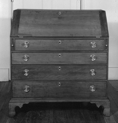 Desk by Edmund Johnson, Salem, Massachusetts, ca. 1800. Cherry with pine. H. 45", W. 21", D. 42 1/4". (Courtesy, Peabody Essex Museum; gift of F. J. Bradlee.)