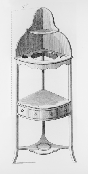 Design for a Corner Basin Stand illustrated on plate 42 of Thomas Sheratons