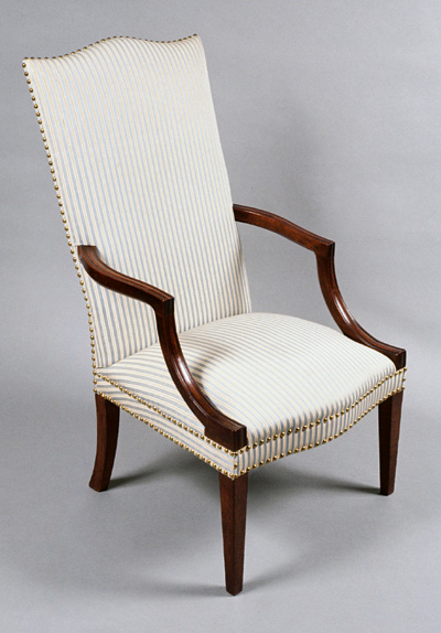 Lolling chair, Salem, Massachusetts, ca. 1805. Mahogany with unidentified secondary woods. H. 42", W. 24", D. 21". (Private collection; photo, Peabody Essex Museum.)