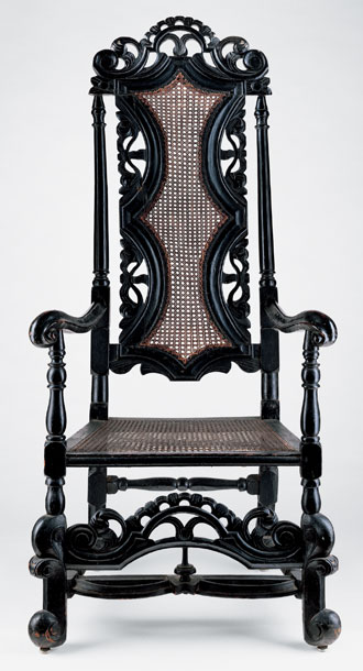 Figure 3  Armchair, England, 1660–1670. Beech. H. 53 1/2", W. 25", D. 22 1/2". (Private collection; photo, Gavin Ashworth.)