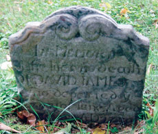 Figure 10 Tombstone for David James, Great Valley Baptist Church, Upper Merion Township, Pennsylvania, dated 1730. (Photo, R. Curt Chinnici.) This is one of the earliest Pennsylvania tombstones made of clouded limestone.