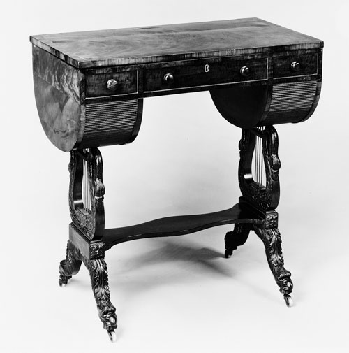 Michael Allison, worktable, New York City, 1823. Mahogany and mahogany veneer with yellow poplar. H. 29 3/4", W. 28 1/8", D. 15 1/2". (Courtesy, Metropolitan Museum of Art, Rogers Fund, 1933.)