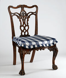 Side chair attributed to the shop of Benjamin Randolph, Philadelphia, Pennsylvania, ca. 1769. Mahogany with white cedar. H. 36 3/4", W. 21 3/4", D. 17 7/8" (seat). (Chipstone Foundation; photograph, Gavin Ashworth.)
