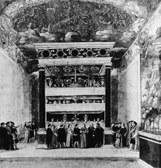 Drawing of a stage cupboard, Flemish, 1549. (Courtesy, Warburg Institute and Cadland House, Fawley, Southampton.)