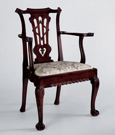 Figure 19  Robert Walker, armchair, King George County, Virginia, 1749. Mahogany. H. 38 1/2", W. 28 1/2", D. 18". (Courtesy, Mary Washington House, Association for the Preservation of Virginia Antiquities; photo, Gavin Ashworth).