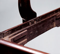 Detail of the chair illustrated in fig. 19, showing the attachment of the arms to the side rails. (Photo, Gavin Ashworth.)