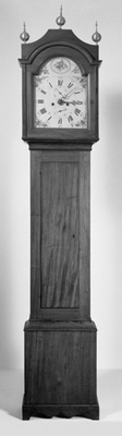 | Figure 16 Nathaniel Dominy V, tall clock case with movement by Nathaniel Dominy IV, East Hampton, Long Island, New York, 1799. Mahogany with white pine and cherry. H. 92", W. 17" (cornice), D. 9" (cornice). (Courtesy, Winterthur Museum, acc. 57.34.1.) |