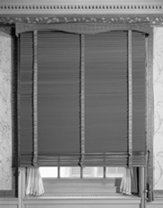 Figure 19 Venetian blind, Philadelphia, Pennsylvania, 1791–1810. Cherry with pine, cotton, and silk. L. 70 5/8", W. 52 1/2". (Courtesy, Winterthur Museum, bequest of Henry Francis du Pont, acc. 67.557.1.)