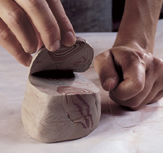 Figure 43 The mass is squared off and thin sections are cut from the stack revealing the beginnings of the agate pattern.